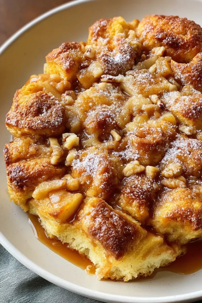 Imagine fluffy biscuit pieces soaking up sweet apple pie filling, all topped with a creamy glaze—it's comfort food in every bite! Perfect for sharing and satisfying any sweet tooth.