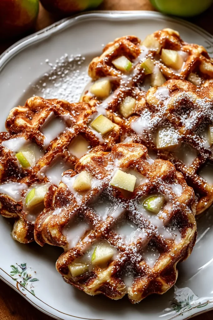 Serve the Apple Fritter Waffle Donuts warm and enjoy!