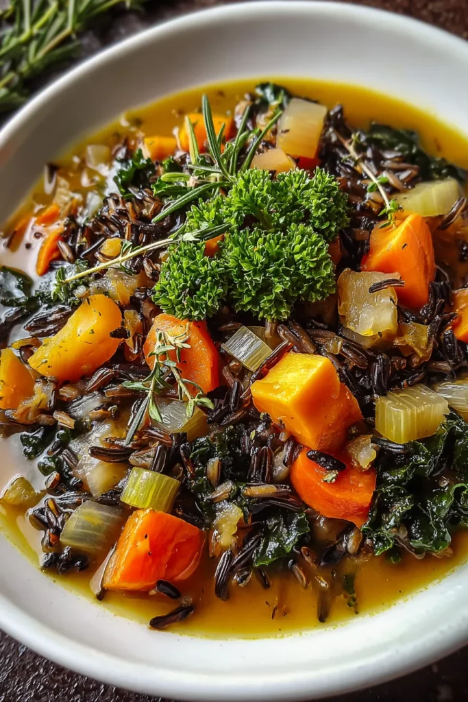 As autumn leaves drift outside your window, this soup feels like a warm hug in a bowl. The low-sodium vegetable broth acts as a gentle canvas, letting the rosemary and thyme paint earthy accents throughout. Olive oil lends a silky sheen as onions and garlic become translucent, releasing that unmistakable savory aroma—inviting everyone to gather around. Carrots and celery add subtle sweetness and crunch, while coconut milk lends a luxurious creaminess without any dairy. This is comfort food elevated: healthy, satisfying, and filled with fall’s best offerings. With just 15 minutes of prep and an hour of cooking time, it’s a manageable weeknight winner or a weekend showstopper. Ready your ladle, pour a glass of cider, and let’s dive into the heartwarming world of Autumn Wild Rice Soup.