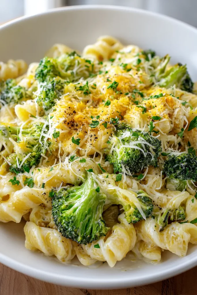 We’ve taken a delightful journey through every aspect of Creamy Broccoli & Cheese Pasta: from the comforting blend of sharp cheddar and nutty Parmesan to the bright zing of lemon zest that ties it all together. You’ve become familiar with the key ingredients—fresh pasta, vibrant broccoli, garlic, olive oil, heavy cream, two kinds of cheese, and seasonings—that work harmoniously to produce a quick, comforting meal perfect for lunch or dinner. The step-by-step method ensures even beginners can achieve that restaurant-quality sauce at home, cooking everything in one pot and one skillet for minimal cleanup. You’ve discovered plating tips for adding texture and color, side pairing ideas to balance richness with freshness, and smart storage strategies to keep your leftovers tasting just as amazing as the first serving. With a total time of just 30 minutes—10 minutes preparation, 20 minutes cooking—and a difficulty level marked as Beginner, this recipe not only fits into busy schedules but also delivers that warm, cheesy contentment we all crave. Don’t forget that this article is ready to print and save, so you can bring it out whenever you need a go-to, crowd-pleasing favorite. Feel free to scroll down and find a FAQ below for quick answers to common cooking questions.