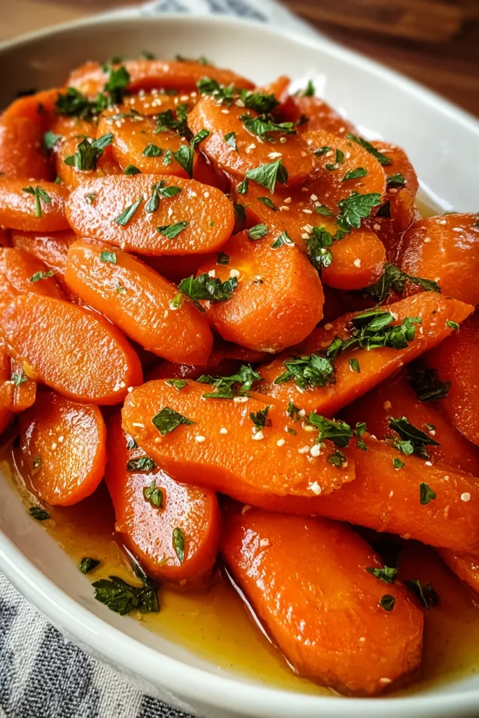 Portion the carrots into small ceramic bowls or ramekins. Drizzle a tiny bit of the leftover glaze over the top, then add a delicate sprig of parsley. This approach makes each guest feel special and keeps portions neat.
