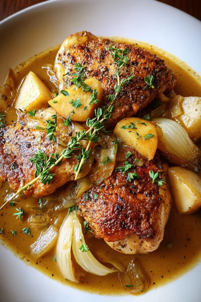 Let’s roll up our sleeves and bring all those ingredients together step by step. This method ensures you develop layers of flavor, from a perfectly browned crust on the chicken to a sauce that’s thickened and infused with apples and herbs.