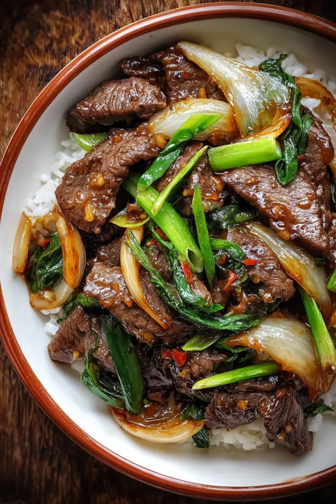 On a busy weeknight, finding a recipe that feels both exotic and approachable can be a challenge, but this beef and onion stir fry has become one of my go-to favorites. It’s rated as a beginner-friendly recipe, so don’t be intimidated if you’ve never handled a wok before. Between the 15 minutes of prep time—where you’ll slice the beef and onions, mince garlic, and grate ginger—and the 15 minutes of hands-on cooking, you’ll have a nutritious, 450-calorie dinner that’s perfect for lunch or dinner. Serving it over steaming rice not only soaks up the delightful sauce but also turns a simple stir fry into a hearty, satisfying meal. Trust me, once you taste how the beef is beautifully tender and the onions are just the right level of sweetness, you’ll be looking for excuses to make it again and again.