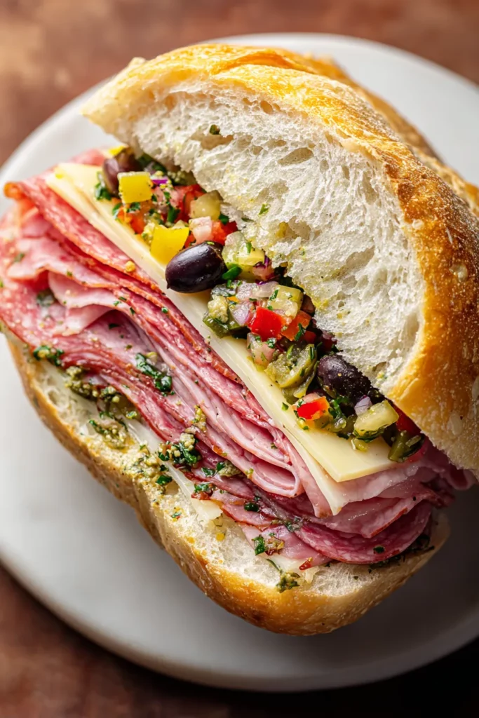 One bite transports you—no, celebrates—the history of Italian immigrants blending their heritage with the bold spirit of the French Quarter. The layers of salami, capicola, and mortadella weave together in a symphony of savory notes, while provolone and mozzarella offer creamy, slightly tangy counterpoints. A kiss of olive oil and red wine vinegar dressing ensures every morsel glides smoothly, harmonizing the textures. From the first crunch of crust to the final lingering olive echo, this sandwich is a conversation starter at any lunch or casual dinner. Trust me, once you master this recipe, you’ll find yourself dreaming of these flavors long after the last slice is gone.