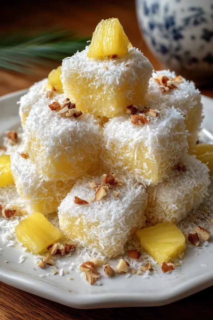 After a quick chill, these Coconut Pineapple Bites are ready to impress. Whether you’re hosting a casual brunch, packing snacks for a road trip, or just sneaking a treat after work, the way you present them can elevate the experience. Think of these bites as your ticket to a mini tropical escape—you can dress them up or keep them low-key depending on the occasion. They’re wonderfully versatile: pair them with creamy dips, vibrant fruit platters, or even a drizzle of melted dark chocolate for an extra touch of decadence. And don’t forget how they mingle beautifully with favorite beverages—sparkling water, iced coffee, or a punchy mocktail. The key is to play with textures, colors, and complementary flavors so your guests—or just you—feel transported to a sunny shoreline. Here are some simple ideas to get you started: