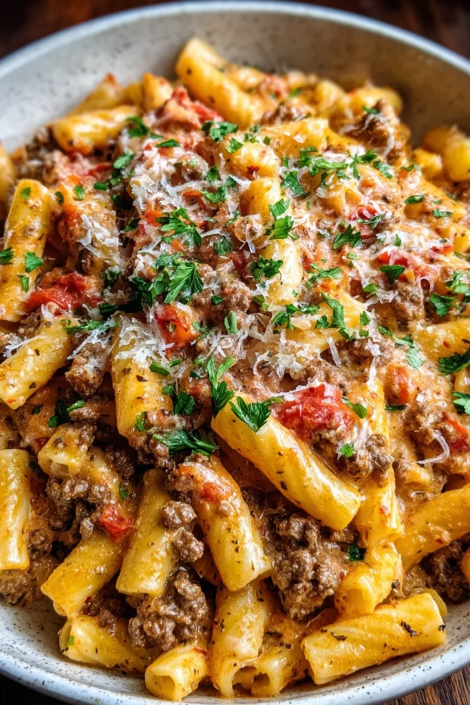 As the pasta cooked to al dente in a separate pot, anticipation built. Tossing the tender noodles into the skillet, I watched them transform as they soaked up that glorious sauce, each piece glistening. The final sprinkle of Parmesan and fresh parsley added pops of nutty depth and herbaceous brightness, tying everything together in a single, unforgettable bite. From the first swirl of the spoon to the last scrumptious forkful, Creamy Rotel Pasta & Ground Beef captures the joy of home cooking—simple, hearty, and utterly satisfying.