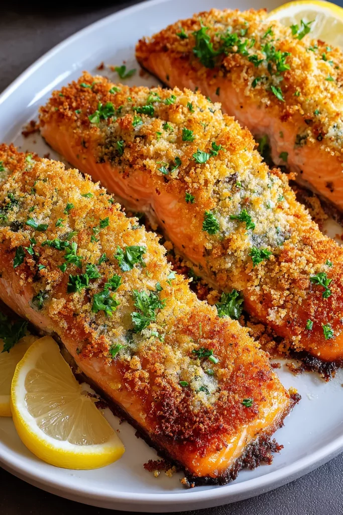From the very first bite of crispy Parmesan topping to the last flake of moist, perfectly baked salmon, this dish proves that a gourmet-worthy meal doesn’t have to be complicated. We’ve walked through the simple yet transformative ingredients, from bold garlic and rich butter to tangy lemon and vibrant parsley, all coming together to create an unforgettable crust. With straightforward steps—taking just 10 minutes to prepare and 15 minutes to bake—you’ll find this recipe fits seamlessly into any schedule, whether you’re entertaining friends or treating yourself to a special dinner at home. Remember, you can jot down or print this article to keep it handy in your recipe collection, and revisit it whenever you need a quick, delicious go-to that impresses every time. You’ll soon discover why this is the perfect balance of zesty, crunchy, and tender textures.