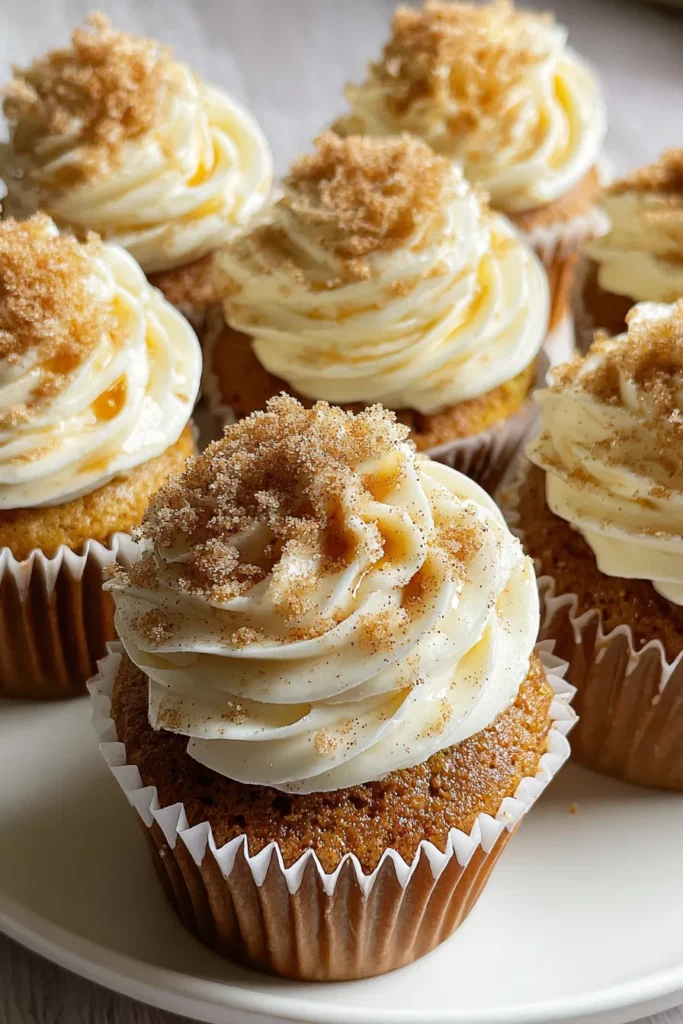 14. Use a piping bag fitted with your favorite tip to frost the cooled cupcakes, then optionally sprinkle a pinch of cinnamon on top for a final flourish.