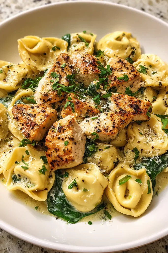 This Garlic Parmesan Chicken Tortellini is a savory dish featuring tender chicken and fresh spinach enveloped in a creamy garlic Parmesan sauce. Perfect for weeknight dinners!