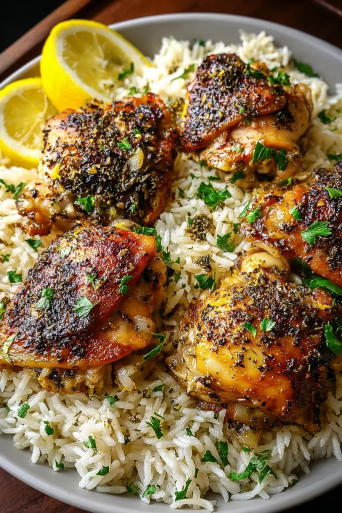 What makes this recipe shine is its balance of simplicity and depth. From the initial sear of the chicken—where the skin crisps to a perfect golden brown—to the fragrant steam rising from the rice as it absorbs all those tangy, herb-laced liquids in the oven, every step is a mini culinary celebration. Plus, with just 15 minutes of prep, a quick skillet routine, and a 30-minute bake, you’ll have dinner ready before you know it. Invite friends over, pour a glass of chilled white wine, and let the lemony aromas set the mood for a Mediterranean feast—even on a busy weeknight, this dish feels like a special occasion.