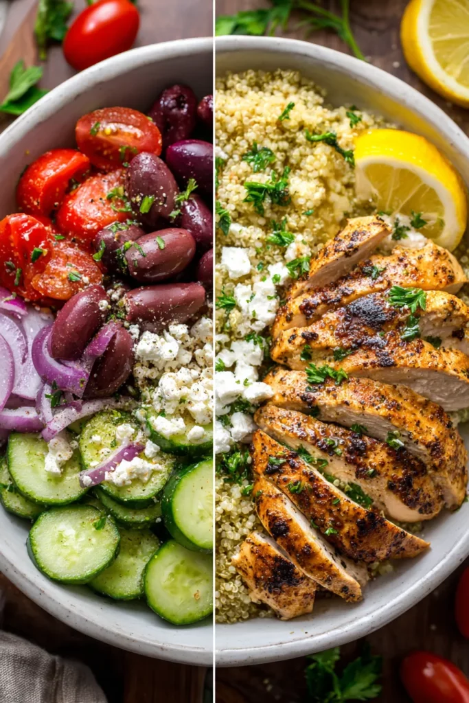 I’d love to hear how your Greek Chicken Bowls turn out! If you have any questions about the method, need tips on ingredient swaps, or just want to share your own tweaks and flavor hacks, drop a comment below. Your feedback helps me know what works in real home kitchens and inspires future recipe ideas. Whether you’re a seasoned cook or new to grilling and meal prep, your stories and suggestions make this community vibrant and supportive. So go ahead—try the recipe, print it out for your collection, and let me know how you customize it to suit your taste. Don’t hesitate to ask if anything needs clarification, and thank you for making these bowls part of your table. Happy cooking, and I can’t wait to read your thoughts!