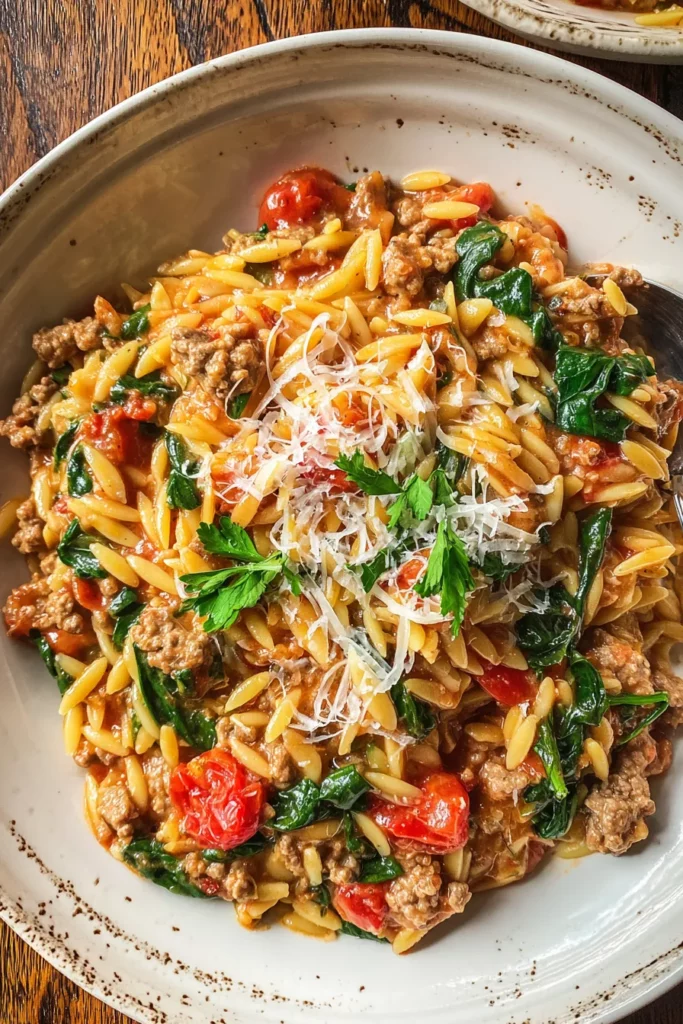 From start to finish, this Ground Turkey and Orzo recipe offers a simple yet flavorful adventure in one pan. We covered everything you need: a list of key ingredients that build depth, a detailed step-by-step guide to create a hearty and healthy dinner, plus versatile serving and storage suggestions to fit any schedule. With a total time of under 45 minutes—10 minutes of prep, 25 minutes of cooking, and a 5-minute rest—you’ll enjoy a beginner-friendly dish that feels like it took hours to prepare. The blend of tender orzo, lean protein, savory tomatoes, and fresh spinach, all enriched by Parmesan cheese and herbs, makes every bite satisfying and balanced.