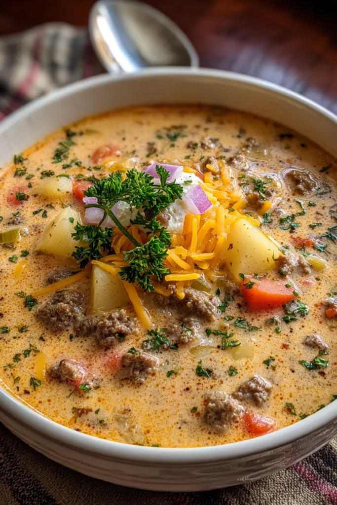 Hearty Creamy Cheeseburger Soup