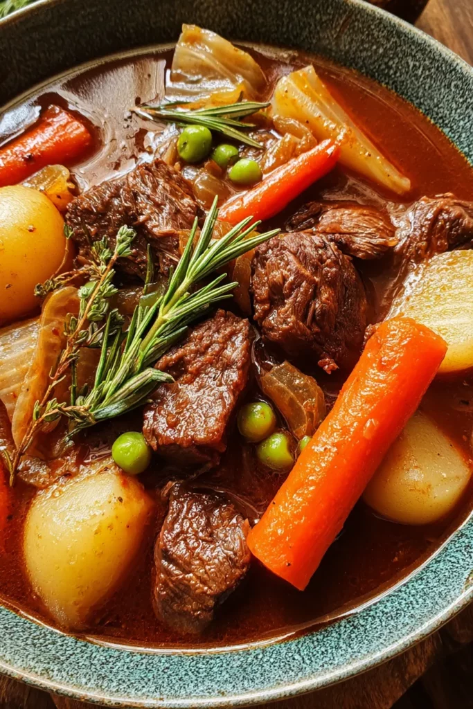 Whether you’re a beginner in the kitchen or a seasoned home cook, this recipe keeps things delightfully simple. With a preparation time of about 30 minutes, a gentle 7–8 hours on low heat, and a brief 10-minute rest before serving, you can set it up in the morning and come home to a hearty feast. At roughly 450 calories per serving, this dinner brings protein, vegetables, and soul-soothing broth together in perfect harmony. It’s exactly what you want on a busy weeknight or when you need a little extra comfort. So slip on your favorite apron, pour yourself a glass of red wine (optional, but highly recommended), and get ready to fall in love with the slow-simmered magic of this classic beef stew.