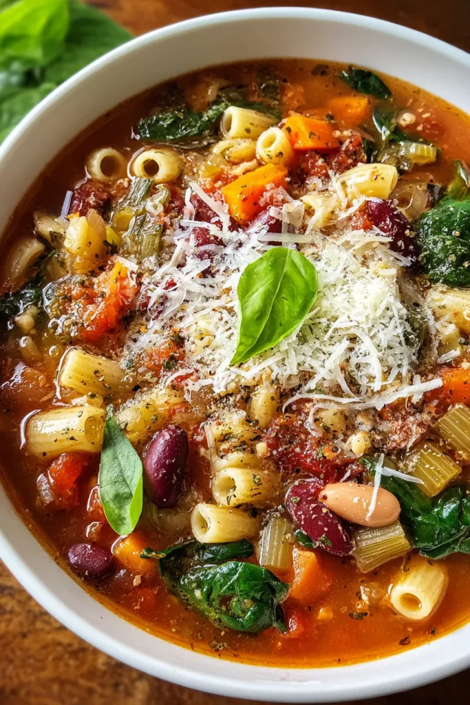 Bringing this Hearty Italian Slow-Cooked Pasta Fagioli recipe to life is like welcoming a hug in a bowl. Over the course of just 15 minutes of active prep and a few hours in your slow cooker—whether you choose the 6-hour low setting or the 3-hour high—you’ll be rewarded with a soup that feels indulgently rich but remains approachable for even the most novice home cook. From the gentle sauté of onions, garlic, and garden vegetables to the slow melding of beans, tomatoes, and broth, each stage builds layers of flavor that culminate in a perfectly balanced dish. The final addition of spinach turns it into a vibrant, nutrient-packed meal, and the finishing touches of grated Parmesan and fresh basil lend an inviting aroma and color. As a beginner-friendly recipe that fits both lunch and dinner occasions, it’s versatile enough for casual family suppers and inviting enough for small gatherings. Feel free to print this article and keep it in your recipe binder or bookmark it for easy reference. You’ll also find a FAQ below to address any extra questions about timing, substitutions, or equipment. If you give this comforting Pasta Fagioli a try, please share your experience—any feedback, questions, or personal twists you discover will help everyone in our cooking community.