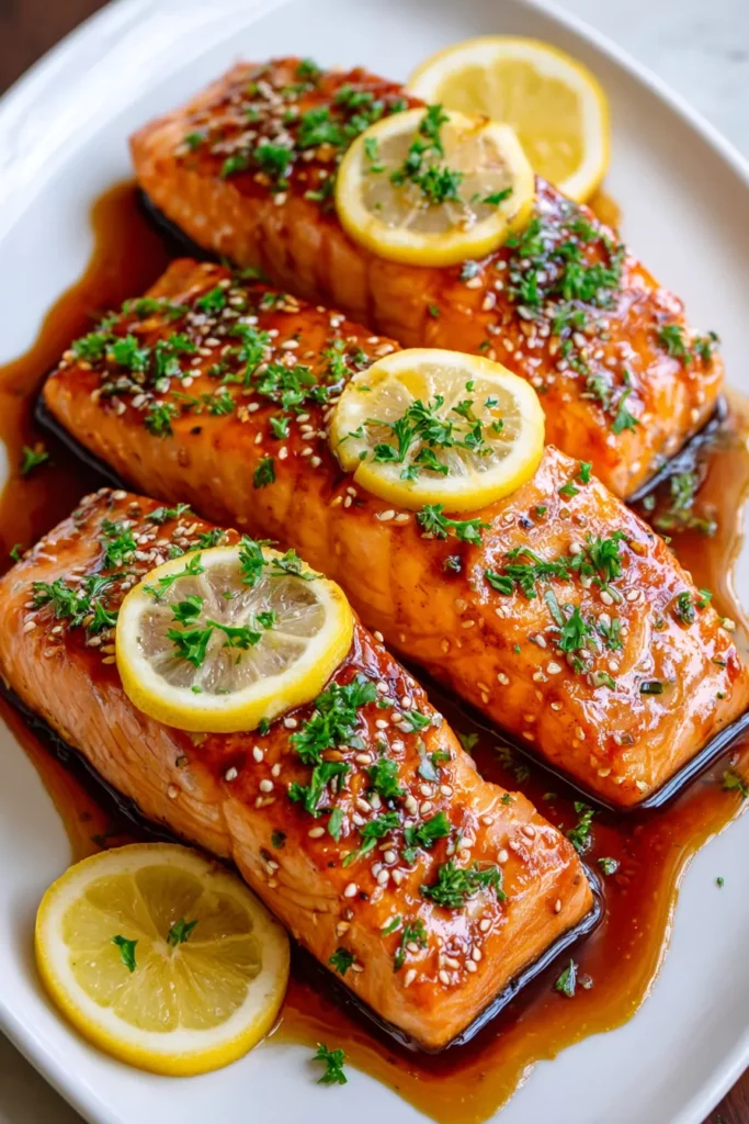 In every mouthful, this honey glazed salmon boasts a perfect blend of sweetness and savory notes, creating a delightful harmony that dances on your taste buds. The golden glaze clings to the salmon like a silken jacket, imparting gentle sweetness from the honey and a subtle umami depth from the soy sauce. A bright splash of freshly squeezed lemon juice cuts through the richness, balancing the flavors and adding that refreshing citrusy zing. Meanwhile, minced garlic infuses every layer with a warm, aromatic kick that lingers long after the last bite. If you’re craving an extra punch, try adding a pinch of red pepper flakes when whisking up the glaze—just a hint of heat takes this dish to the next level. One of my favorite memories is serving this at a casual backyard dinner; the way the glaze caramelized on the grill gave it an almost smoky twist. Top it off with a scattering of chopped parsley and a few lemon wedges for garnish, and you’ve got a beautiful, restaurant-style plate ready to steal the show at your table.