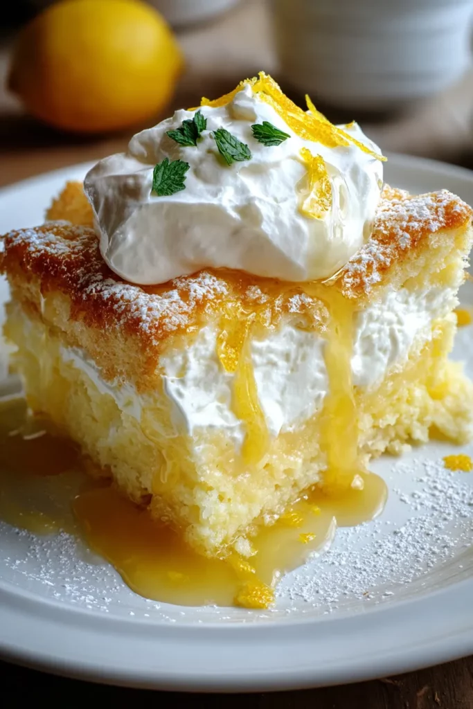 - Toasted coconut flakes – Sprinkle golden-brown coconut flakes over the top just before serving. The crunchy texture and tropical hint underscore the lemon’s brightness.