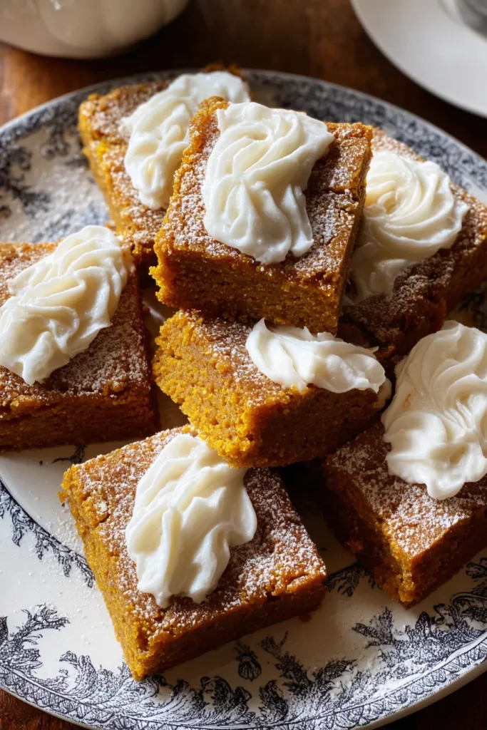 Soft, spiced, and irresistibly moist, these pumpkin bars are the perfect treat for autumn. Each bite is enhanced by a luscious cream cheese frosting, making them a seasonal favorite.