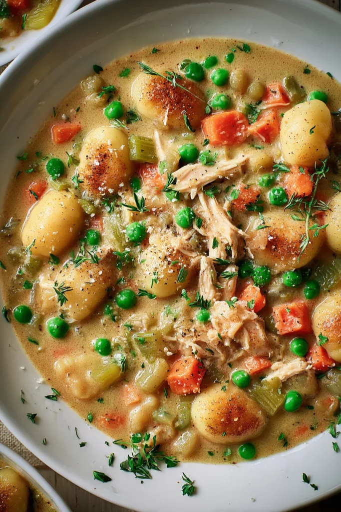 This One Pot Gnocchi Chicken Pot Pie bursts with rich flavors from seasoned chicken, fresh veggies, and soft gnocchi, all enveloped in a creamy sauce that warms the soul.