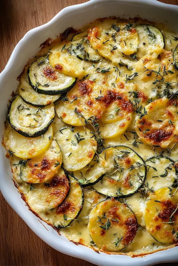 From the first forkful, you’ll taste the harmonious blend of melt-in-your-mouth potatoes, subtly sweet zucchini ribbons, and the nutty depth of Gruyère and Parmesan cheeses. A gentle sprinkle of fresh thyme leaves infuses each mouthful with an herbaceous note, while a hint of warm nutmeg in the cream elevates the flavors without overpowering them. As the veggies bake for about an hour, your kitchen will fill with joyous anticipation. This recipe sits comfortably at an intermediate difficulty level—perfect if you’re ready to level up from basic casseroles but still crave straightforward steps. In about 30 minutes of prep, followed by one hour of baking and a 10-minute rest, you’ll have a stunning dish that clocks in around 400 calories per serving. Let’s dive into the details that make this gratin shine!