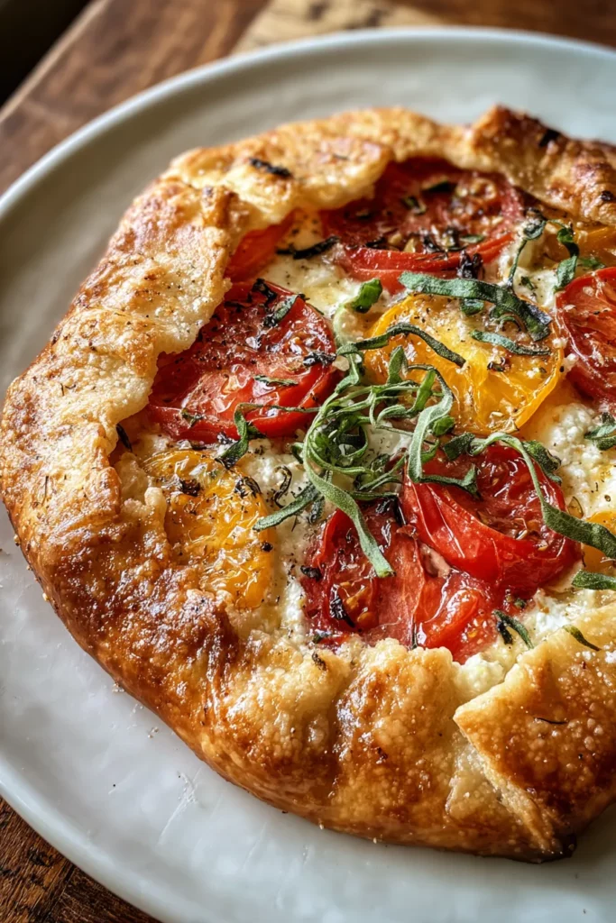 Before you begin, it helps to gather each ingredient so the assembly flows seamlessly. This galette is all about balance: a tender, flaky crust that plays backdrop to juicy tomatoes, tangy goat cheese, and fragrant basil. Every element has its role in creating a dish that’s rustic in appearance but refined in flavor.