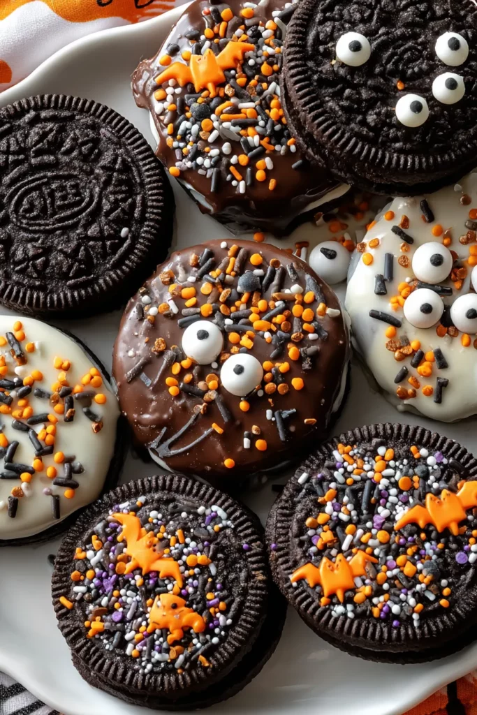 SERVING SUGGESTIONS FOR SPOOKY SCARY HALLOWEEN CHOCOLATE DIPPED OREO COOKIES