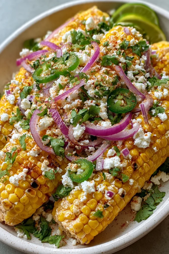Sweet, seasonal corn is the star of the show. Grilling brings out its natural sugars and adds those irresistible smoky charred bits.