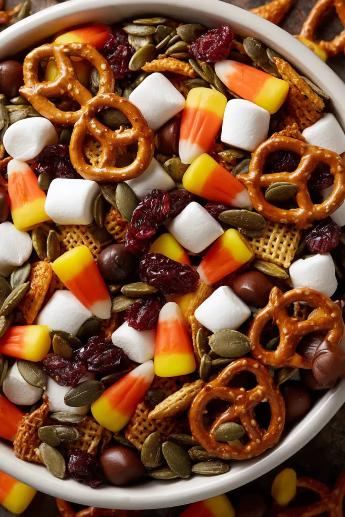 Crunchy, sweet, and salty—this fall snack mix combines pretzels, candy corn, and pumpkin seeds for a delightful treat. Perfect for cozy gatherings and Halloween fun!