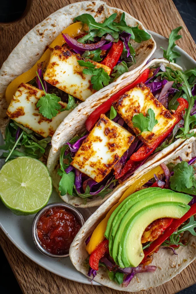 Let’s get cooking! This is a straightforward, beginner-friendly recipe that moves quickly once you’ve got all your ingredients prepped and ready. You’ll first pan-sear the halloumi to golden perfection, then stir-fry colorful vegetables, warm your tortillas, and finally assemble everything into neat, flavor-packed bundles.