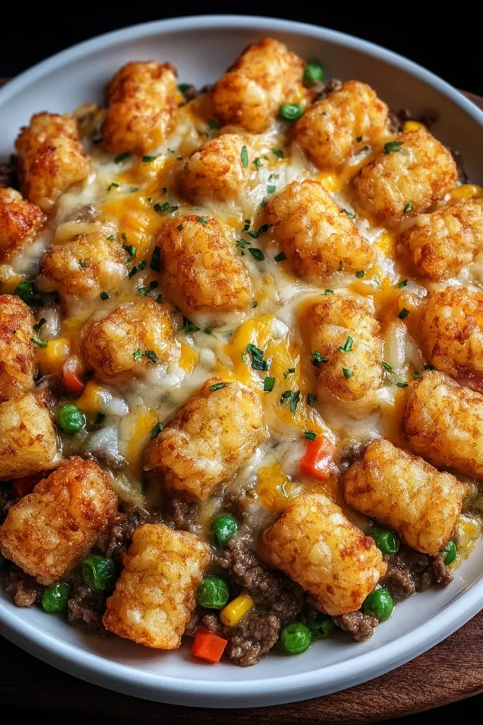 There’s something undeniably comforting about a dish that brings together crispy surfaces and creamy insides in every single mouthful. Tater tot casserole is like a warm hug on a chilly evening, marrying layers of savory ground beef and mixed vegetables with golden tater tots and melted cheddar that wraps around each bite. The colors alone—bright orange cheese mingling with pops of green peas and vibrant orange carrots—already promise a cozy meal that’s as inviting on the eyes as it is on the palate. When you fork through the crispy tots, you’ll uncover a rich, velvety base finished with just the right hint of Worcestershire sauce and garlic, turning a humble weeknight dinner into something special.