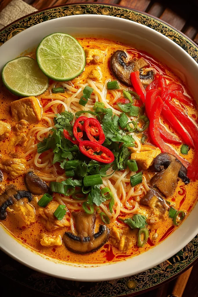 By now, you’ve got all the insights and detailed steps you need to whip up a sensational pot of Thai Red Curry Noodle Soup. From the bold combination of coconut milk and red curry paste to the tangy finish of fresh lime juice, every element in this recipe works together to create a bowl that’s equal parts comforting and exciting. It’s a beginner-friendly dish that doesn’t skimp on flavor, making it perfect for busy weeknights, casual gatherings, or anytime you crave a flavorful adventure at home. Remember, the recipe is versatile: swap chicken for tofu, fish sauce for soy sauce, or even toss in a boiled egg to customize it your way.