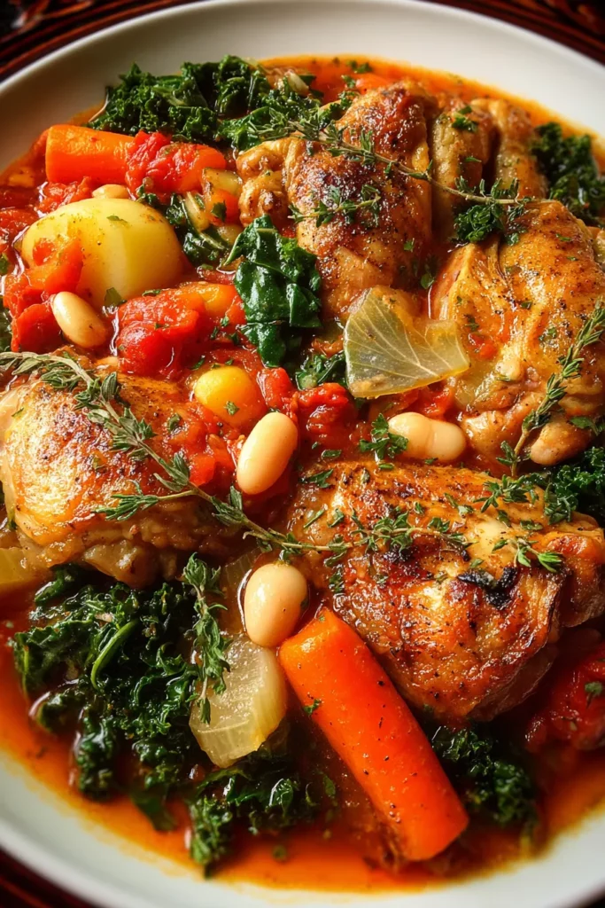This Tuscan Stew combines tender chicken thighs with vibrant vegetables, fragrant herbs, and creamy cannellini beans for a cozy, filling meal that warms the soul.