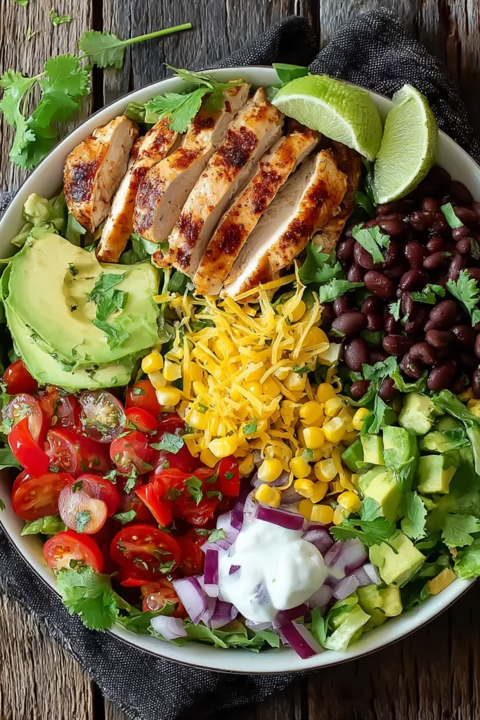 Every element in this salad feels purposeful: black beans lend a hearty protein punch, red onion adds a subtle zing, and a drizzle of tangy salsa-sour cream dressing, brightened with fresh lime juice, ties everything together in a harmonious dance. Whether you’re feeding a hungry family, hosting a weekend barbecue, or simply craving a satisfying solo meal, this beginner-friendly recipe delivers flavor without fuss. The combination of textures—crunchy greens, tender chicken, creamy avocado, and zesty dressing—creates a wholesome dish that feels indulgent yet light. Get ready to dive into a bowl of sunshine, spice, and freshness that will have everyone asking for seconds.